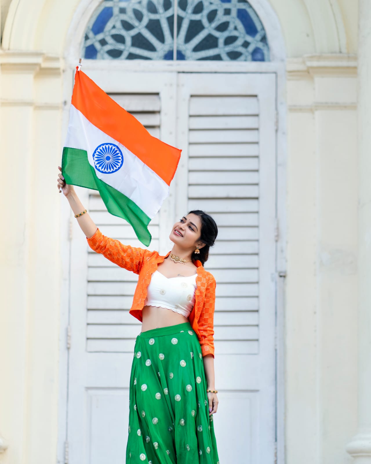 உடம்பிலும், கையிலும் தேசியக்கொடி: தர்ஷா குப்தா